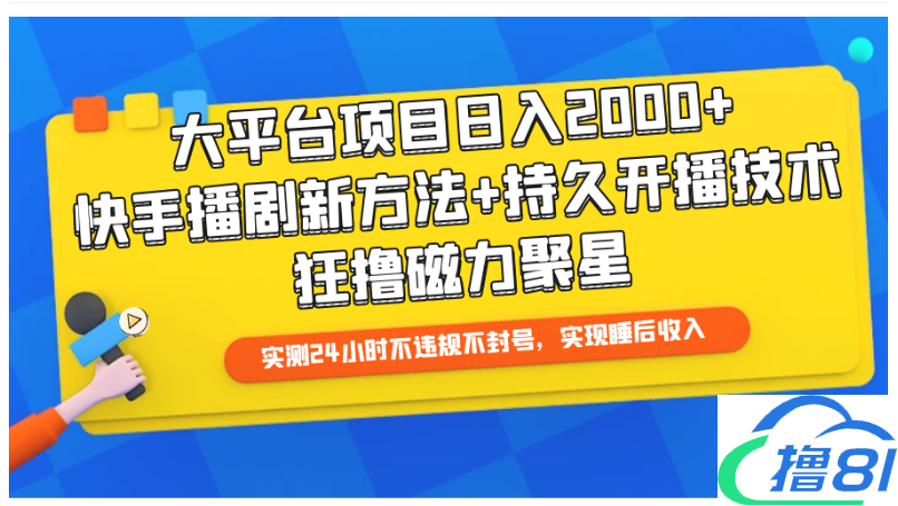 大平台项目日入2000+,快手播剧新方法+持久开播技术,狂撸磁力聚星