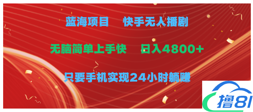 蓝海项目,快手无人播剧,一天收益4800+,手机也能实现24小时躺赚