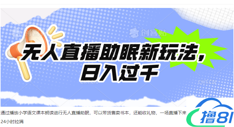 无人直播助眠新玩法,24小时挂机,日入1000+