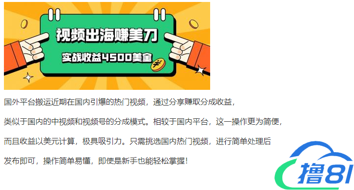 国内爆款视频出海赚美刀,实战收益4500美金,批量无脑搬运,无需经验直接上手